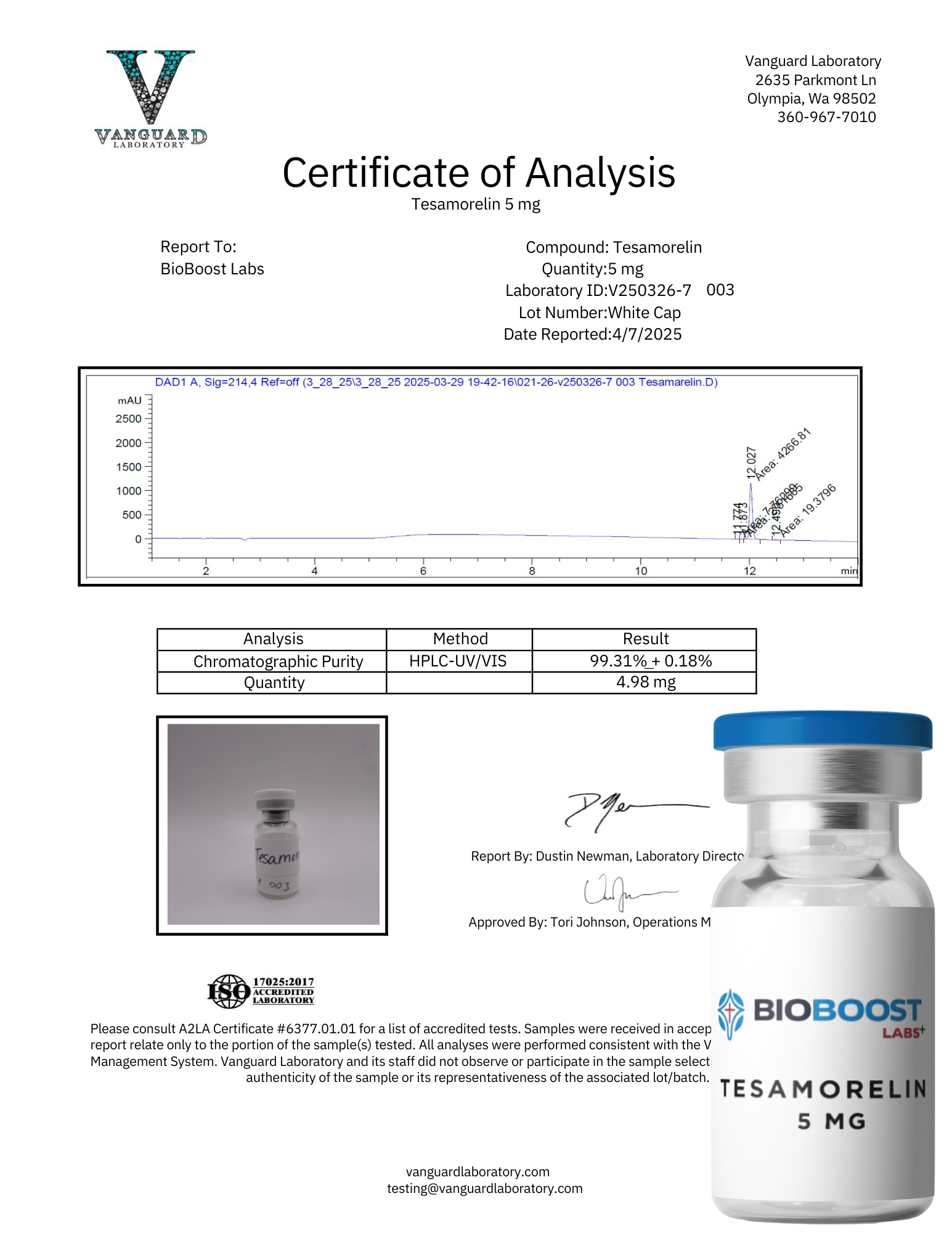 Tesamorelin is a synthetic peptide supplied for laboratory and scientific research purposes only. This product is intended exclusively for in vitro studies and is not approved for human or veterinary use.